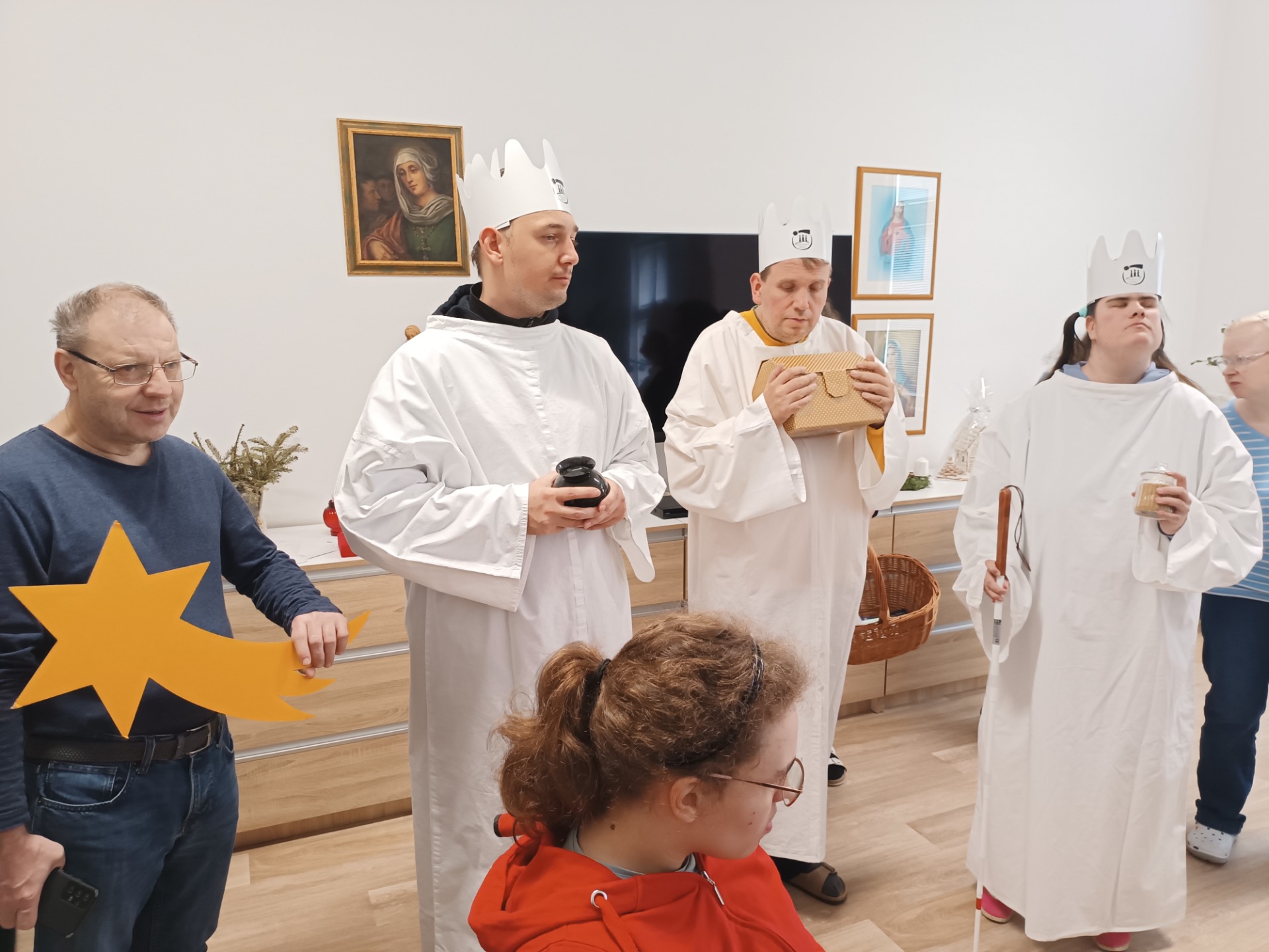 Leden jsme s klienty zahájili Tříkrálovou sbírkou v budově Mariana a v Domově pro seniory sv. Zdislavy. Naši koledníci vybrali částku 3149,-Kč. Děkujeme všem, kteří do sbírky přispěli. Pro velký ohlas jsme si tento měsíc znovu udělali "Beauty day", kdy si naši klienti v rámci dopoledne mohli dopřát masáže, relaxační pobyt ve snoezelenové místnosti, bazální stimulaci, malování mandal a dámy si mohly nechat nalakovat nehty. Při edukačním programu "První pomoc" jsme si všichni jak teoreticky, tak následně především prakticky procvičovali, jak ošetřit různá zranění. I když se jednalo o vážné téma, užili jsme si u toho hodně zábavy. Také jsme si vařili oběd a to zeleninovou polévku a smažený hermelín s bramborem. Začali jsme s výrobou jarní výzdoby pro náš stacionář, kdy jsme s proutí vyráběli krásného velkého anděla a také věnce, které nám na dveřích nahradily vánoční výzdobu.