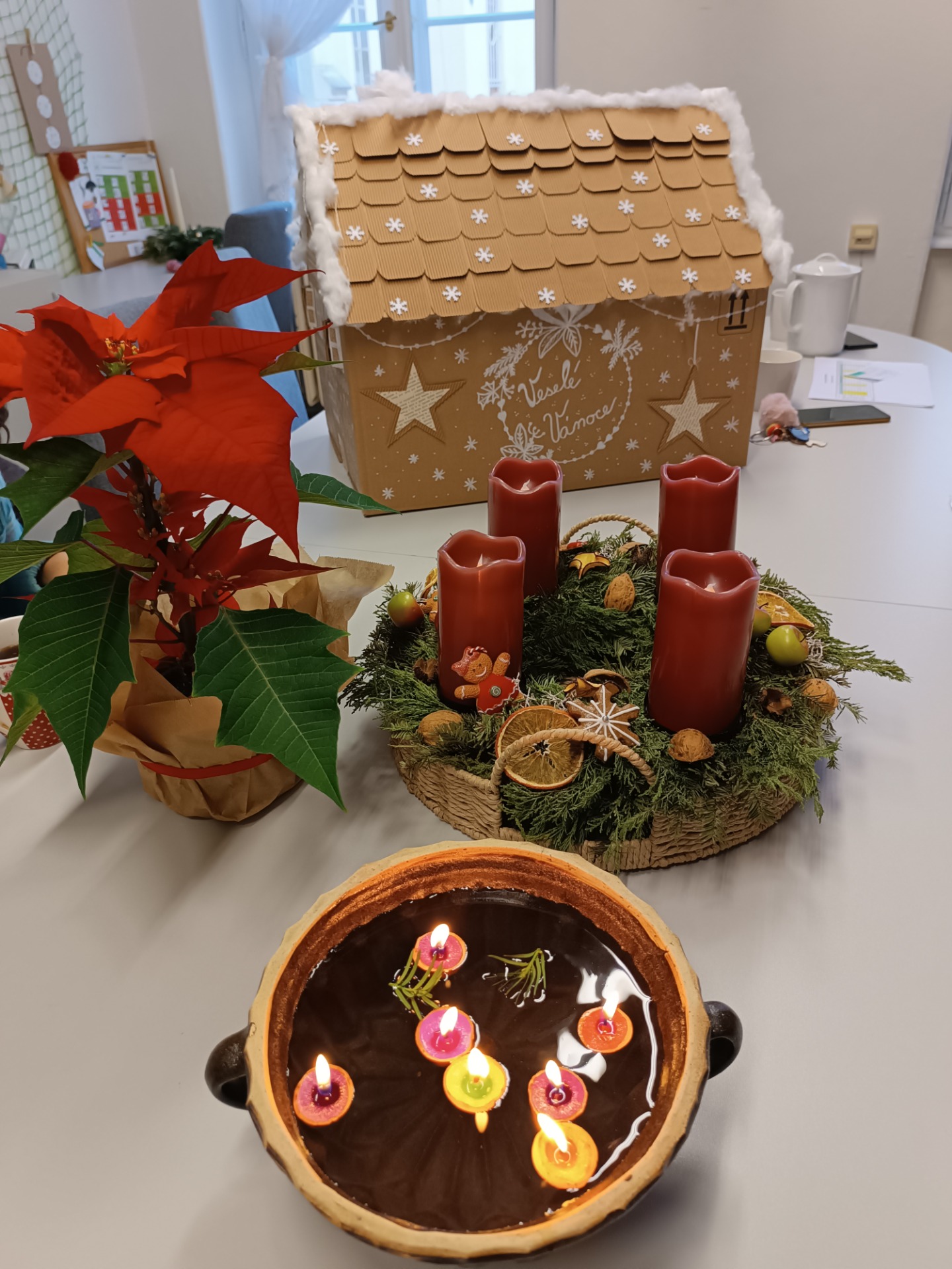 Adventní čas jsme s klienty strávili spoustou krásných aktivit. Na začátku prosince proběhla premiéra představení "Popelka", kterou klienti společně s pracovníky po celý měsíc listopad pilně trénovali. 4. 12. ji v dopoledních hodinách shlédl pan primátor, Tomáš Navrátil, se svým doprovodem z Magistrátu města Opavy, Odboru sociálních věcí v rámci své návštěvy Domova pro seniory sv. Zdislavy a Denního stacionáře Domovinka. Odpoledne pak opatrovníci klientů při Adventním setkání. Klienti podali neuvěřitelný výkon, za který sklidili obrovský aplaus od svých blízkých. V kapli Božského Srdce Páně jsme si poslechli koncert Kružberských pěnkav. Také jsme byli pozváni naším dlouholetým přítelem, panem Baranem, na vánoční punč a zabijačkové občerstvení na vánoční trhy v Opavě. Pěkné dopoledne jsme si udělali s králíčkem, kterého nám zapůjčil Domov pro seniory sv. Zdislavy. Jeden den jsme vyrazili také do kavárny na dobrou kávu a zákusek. Před Vánoci nechybělo ani zdobení stromečku a vánoční zvyky. Než jsme se před svátky rozloučili, rozdali jsme si dárky.