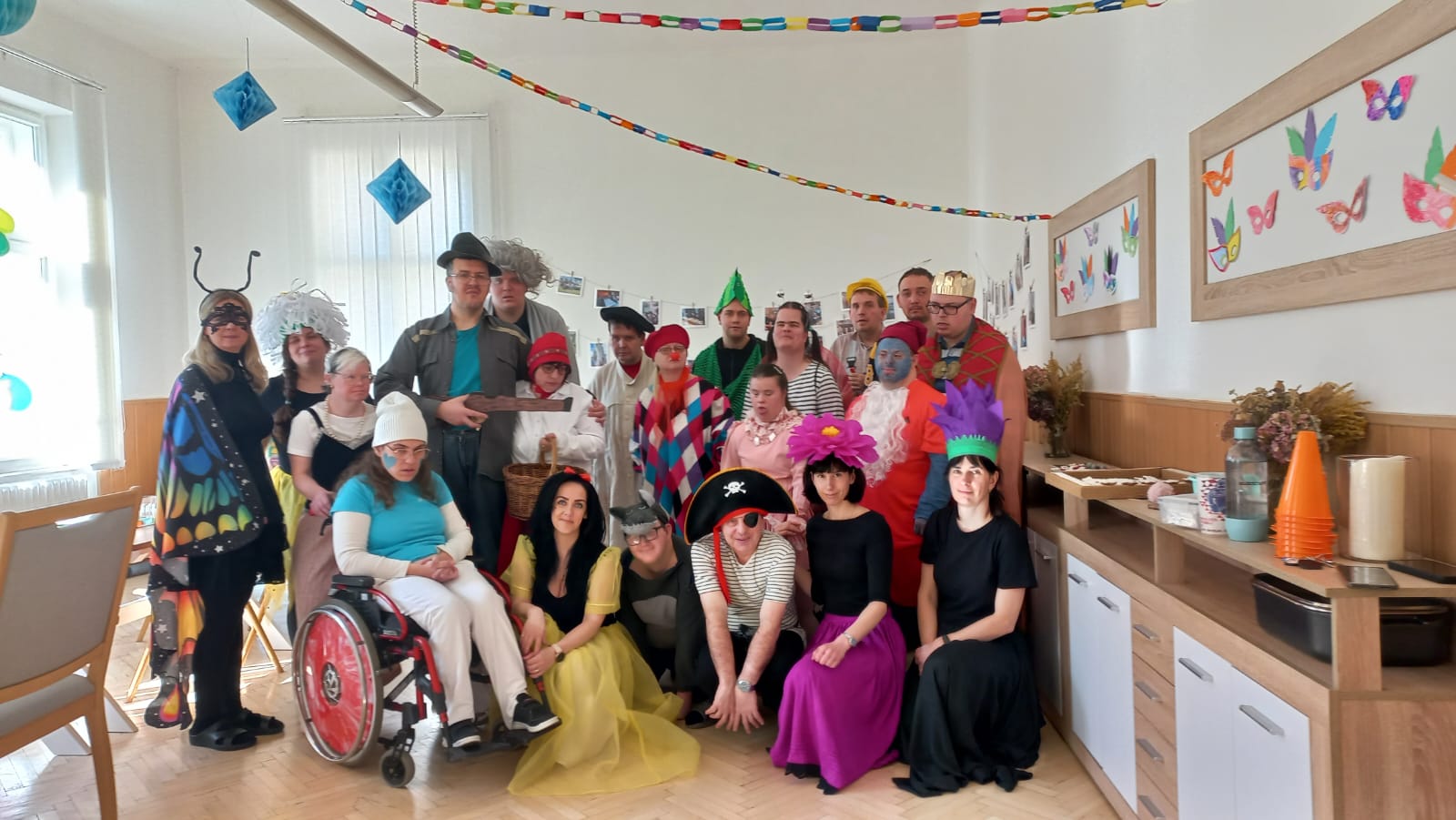 V únoru jsme si vyráběli novou výzdobu a anděla z proutí do našeho stacionáře. Začali jsme také s tvořením šitých výrobků na plánované březnové Jarní setkání v Marianum a s jejich plněním dutým vláknem. V rámci nácviků v kuchyni jsme si s klienty připravili pizzu, štrůdl a jeden den také oběd v podobě bramborových placek s uzeným masem. Ve Slezském divadle Opava jsme shlédli opravdu krásné představení Mrazík a na konci měsíce nás čekal maškarní karneval, na který se těšili všichni klienti. Zatancovali jsme si, zasoutěžili, dali si dobré občerstvení a každý si v tombole vylosoval dárek.